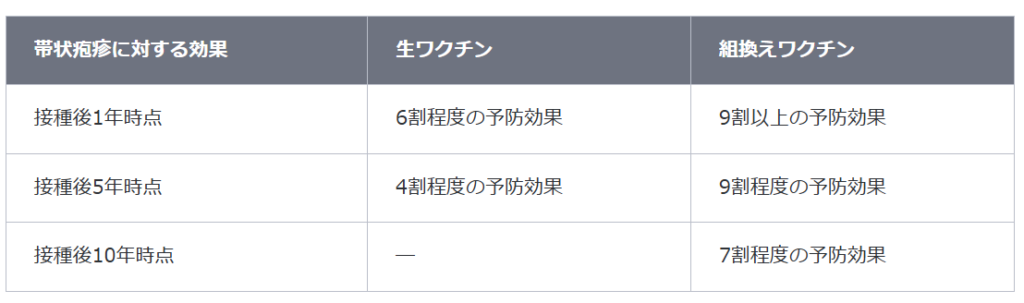 いずれのワクチンも、帯状疱疹やその合併症に対する予防効果が認められています。