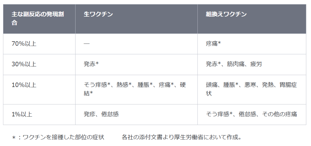 (参照:厚生労働省ウェブページ 帯状疱疹ワクチン ワクチンの安全性)